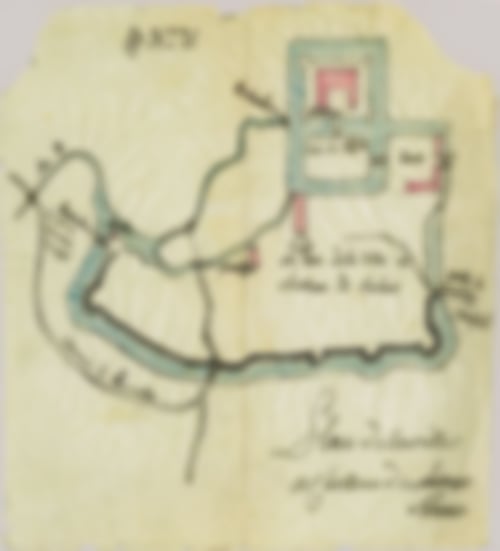Neben der als paroise bezeichneten Pfarrkirche ist nur ein relativ großer Gebäudekomplex im Plan eingezeichnet, der im Verhältnis zur Kirche überdimensioniert wirkt und vielleicht den Bereich des zum Schlossgraben gehörenden Domhofes darstellen dürfte.